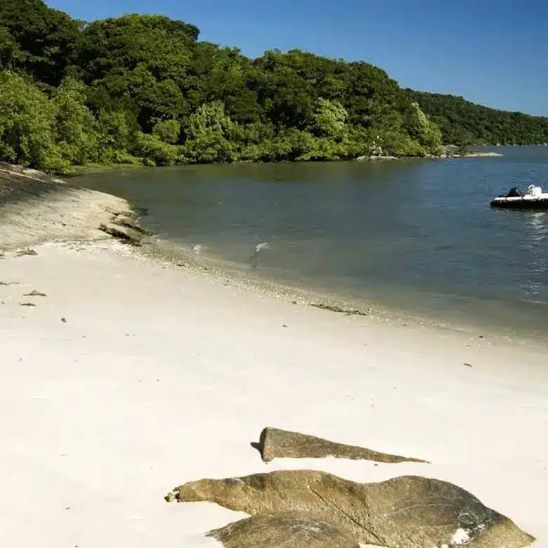 Caminhadas por trilhas ecológicas levam a mirantes com vistas deslumbrantes, enquanto a rica fauna e flora local podem ser apreciadas em passeios de barco. A ilha também possui sítios históricos e culturais, como o Forte Nossa Senhora dos Prazeres, que remonta ao século XVIII.